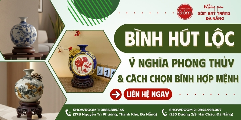 Bình hút lộc Bát Tràng là vật phẩm phong thủy có giá trị cao, hội tụ ý nghĩa sâu sắc về tài lộc và yêu cầu gia chủ lựa chọn cẩn thận để hợp với bản mệnh. Để phát huy tối đa công năng này, việc hiểu rõ ý nghĩa phong thủy của bình và nắm vững cách chọn sản phẩm hợp mệnh theo Ngũ Hành là yếu tố then chốt giúp tối ưu hóa khả năng thu hút tài lộc, gia tăng vượng khí cho không gian sống và làm việc. Với kinh nghiệm và sự am hiểu sâu sắc về gốm sứ phong thủy, bài viết này của Không gian Gốm Bát Tràng Đà Nẵng sẽ cung cấp cho bạn những thông tin toàn diện nhất.