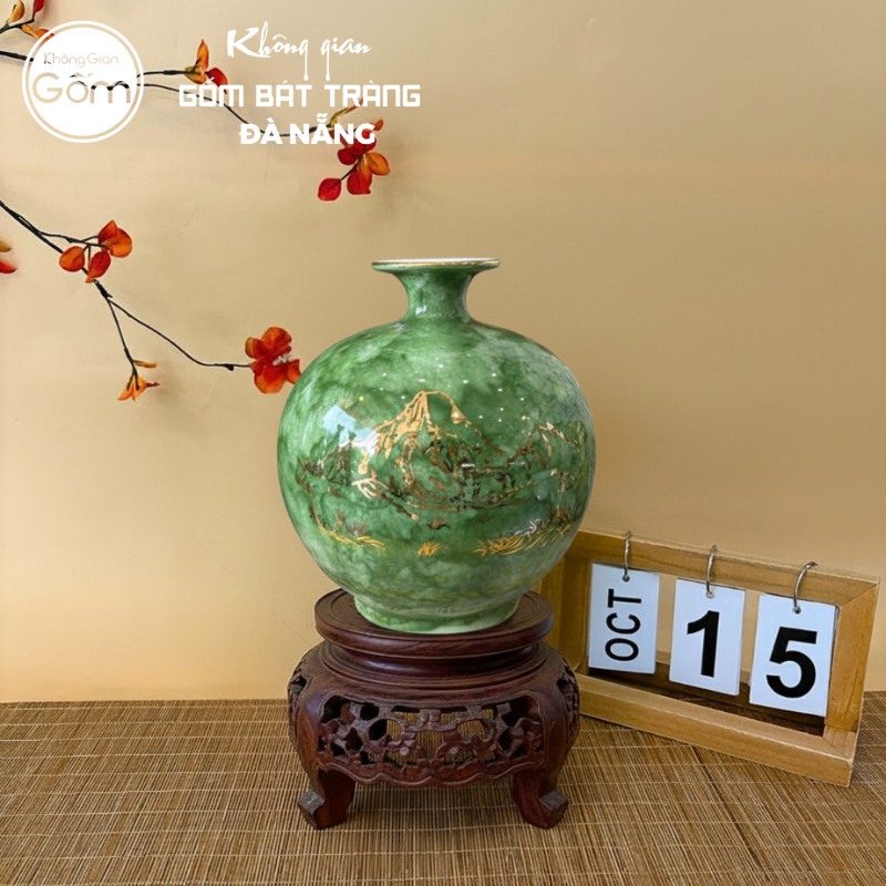 Toàn bộ họa tiết trên bình đều được thực hiện thủ công bởi đôi bàn tay khéo léo của các nghệ nhân Bát Tràng dày dặn kinh nghiệm, đảm bảo mỗi đường nét đều sống động và có hồn. Các dòng men như men lam, men rạn hay kỹ thuật vẽ vàng kim 24K càng làm tăng thêm giá trị và tính thẩm mỹ cho vật phẩm.
